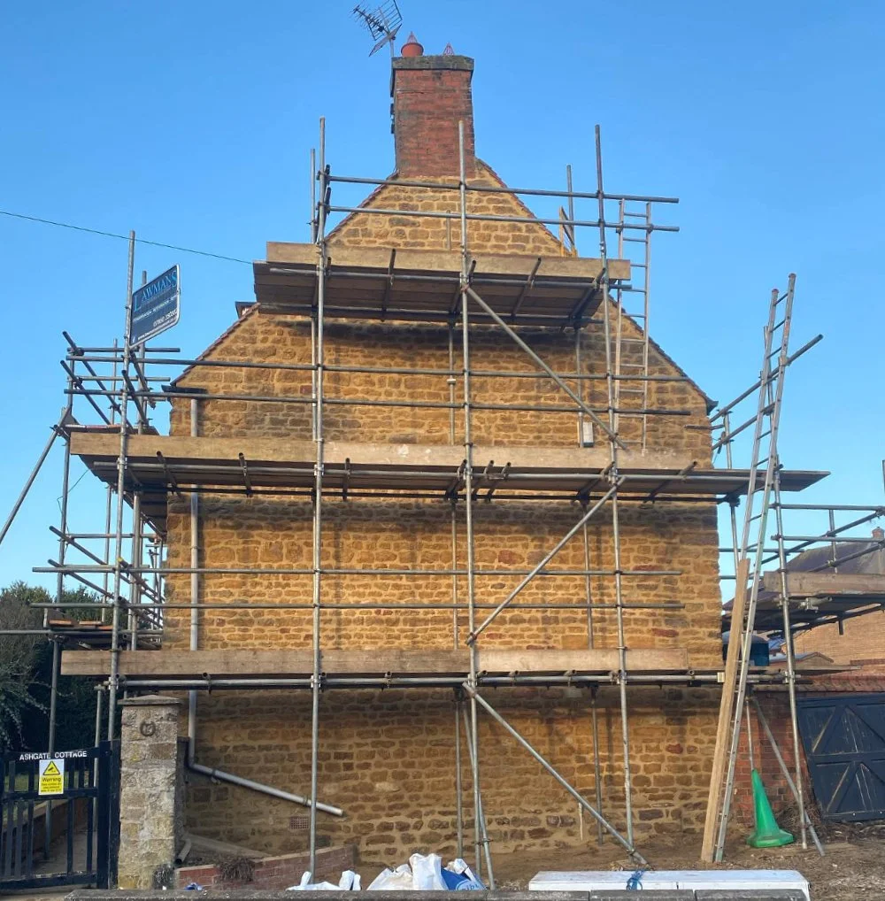 We loved working on this very old Grade 2 listed building in Olney. We replaced nearly 9 square meters of chiselled ashlar, some very big quoins, a few cills and a full rake out and repoint. Plus some minor repairs to the bay window. We were very mindful of keeping as much of the original stone as possible to preserve the buildings history. What a difference to the facade. Hanbeck Natural Stone supplied all of the stone and it was a fantastic match.